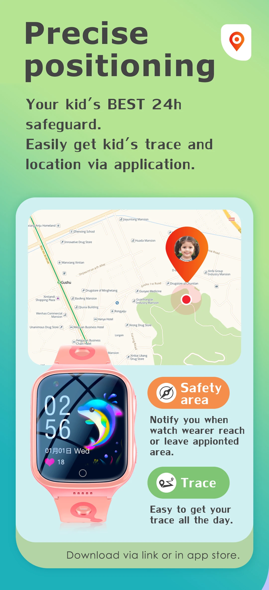 6.The watch support health monitor as pedometer.Let children have a safety and funny childhood.